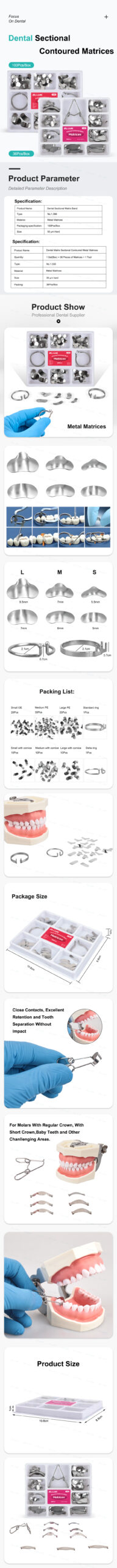 36pcs/Box Dental Sectional Contoured Matrices Matrix Interproximal Clamp No1.330
